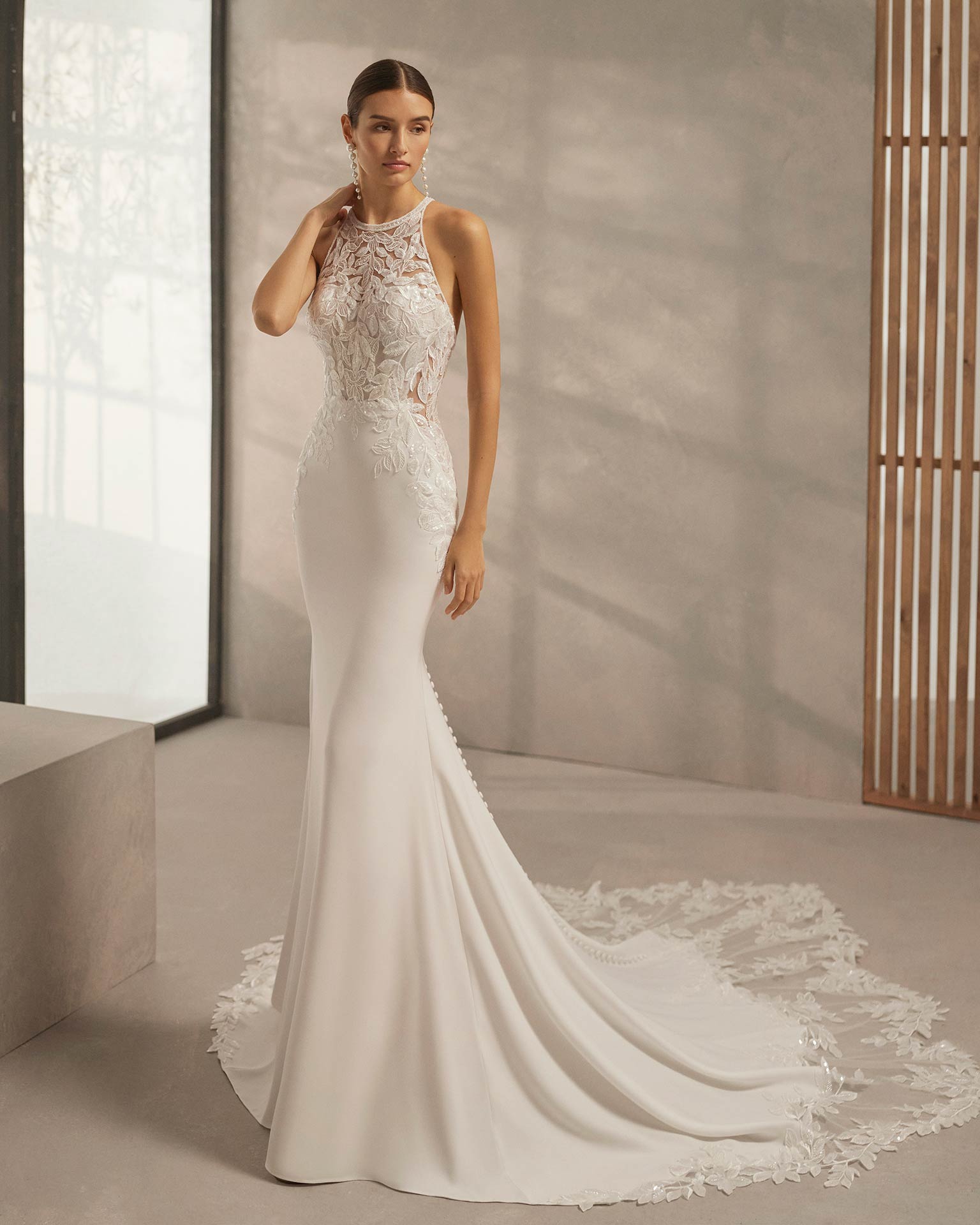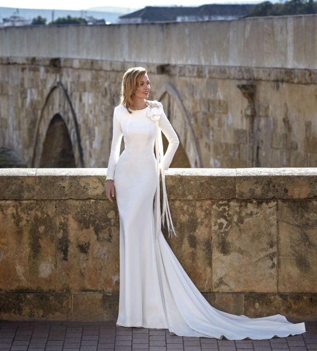 Este vestido de novia de estilo romántico es ideal para novias que desean destacar con un look delicado y sofisticado. Confeccionado en tul suave combinado con encaje y pedrería, ofrece una silueta elegante y femenina. Presenta un escote corazón, espalda tipo corset y tirantes extraíbles, que permiten personalizar el diseño con facilidad. La falda con abertura lateral aporta movimiento y un toque sensual, convirtiéndolo en la elección perfecta para una boda inolvidable.